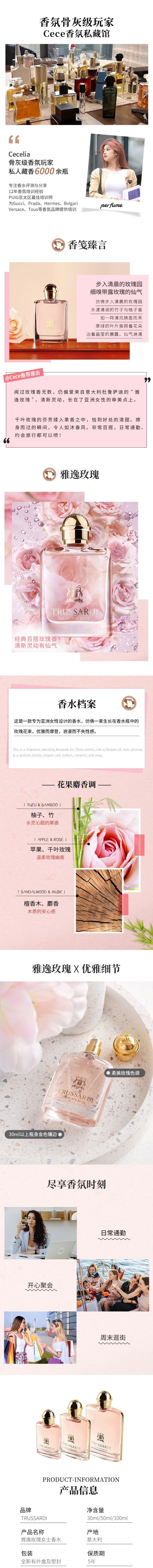 Trussardi杜魯薩迪雅逸玫瑰女士淡香水EDT花果麝香調