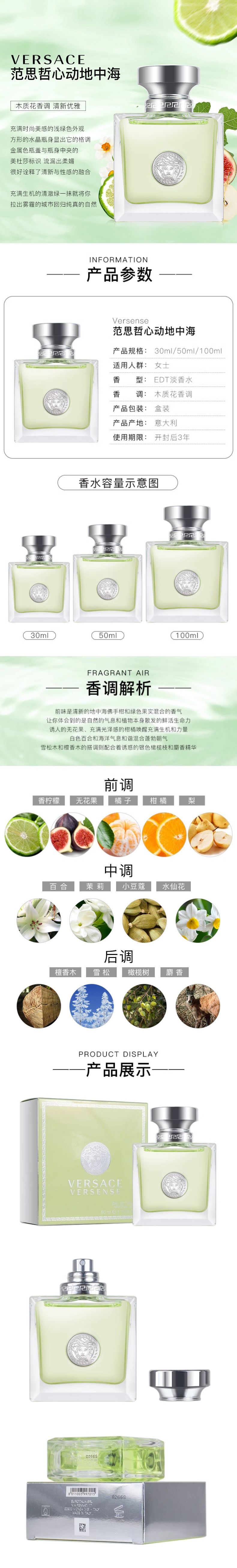 VERSACE範思哲心動地中海心動女士淡香水30 50ML送禮優選木質花香